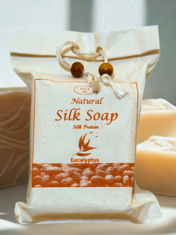 Calming handmade silk soap with lavender oil for stress relief and soothing evening skincare routine.